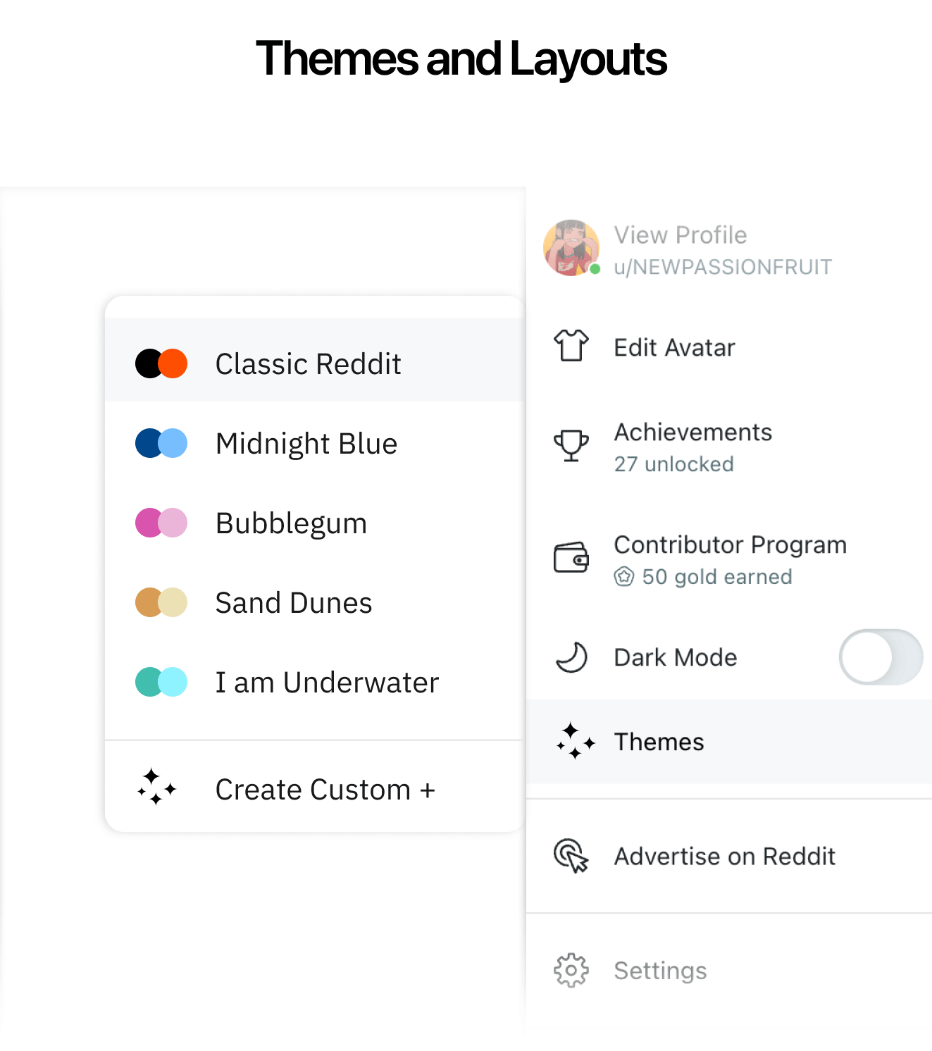 With Reddit Pro, transform your experience by customizing themes, layouts, and fonts. Tailor your homepage, curate your feed, and design your profile with unique visuals and even background music, making Reddit truly yours.